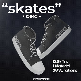 A pair of skate-inspired shoes from the fictional streetwear brand "aera". Designed to be Simple and versatile for any style.